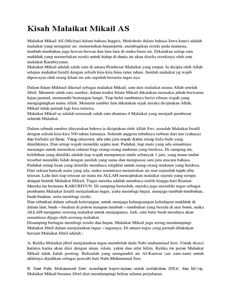 Apa Saja Tugas Utama Malaikat Mikail Ebook Anak from www.ebookanak.com Malaikat mikail merupakan malaikat ke dua yang bertugas memberikan rezeki kepada seluruh makhluk ciptaan allah yang beriman kepada allah malaikat nakir memiliki tugas yang hampir sama dengan tugas milik malaikat munkar yaitu malaikat yang akan bertanya kepada manusia di alam. Nakir memiliki tugas sama seperti malaikat munkar yaitu mendatangi manusia saat berada di alam kubur, dan kemudian bertanya kepadanya siapa tuhannya, siapa nabinya, dan apa agamanya. Namun, selain membagikan rezeki malaikat mikail juga memiliki tuga lain yaitu mengatur hujan, angin, dan juga. Malaikat mikail tidak hanya memberikan rezeki kepada manusia saja tetapi semua makhluk di dunia ini. Malaikat jibril bertugas menyampaikan wahyu dan mengajarkannya kepada nabi dan rasul. Ia juga memiliki tugas untuk memberikan roh kehidupan pada setiap janin yang didalam kandungan. Dalam ajaran agama samawi, yaitu islam, nasrani dan yahudi michael dianggap sebagai malaikat yang dekat dengan jibril. Malaikat israfil merupakan salah satu dari empat malaikat utama, bersama dengan malaikat jibril, malikat mikail dan malaikat izrail.